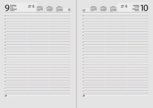 En fin og praktisk kalender som gjør det enkelt å holde styr på dagene. Med god skriveplass og et oversiktlig ukeoppsett får du full kontroll, enten det er jobb eller hverdagsplaner.