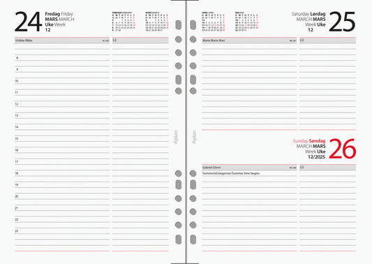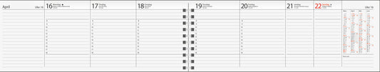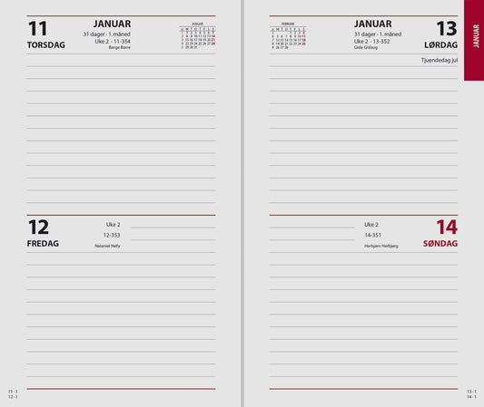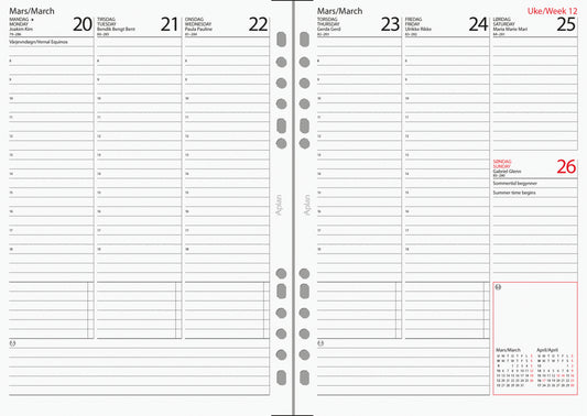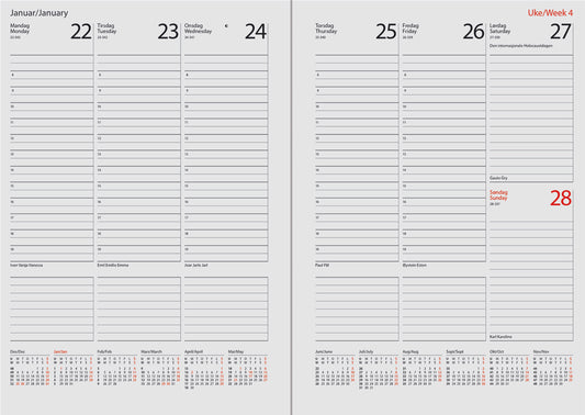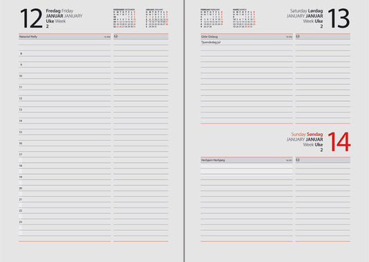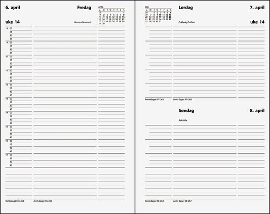 En fin og praktisk kalender som gjør det enkelt å holde styr på dagene. Med god skriveplass og et oversiktlig ukeoppsett får du full kontroll, enten det er jobb eller hverdagsplaner.