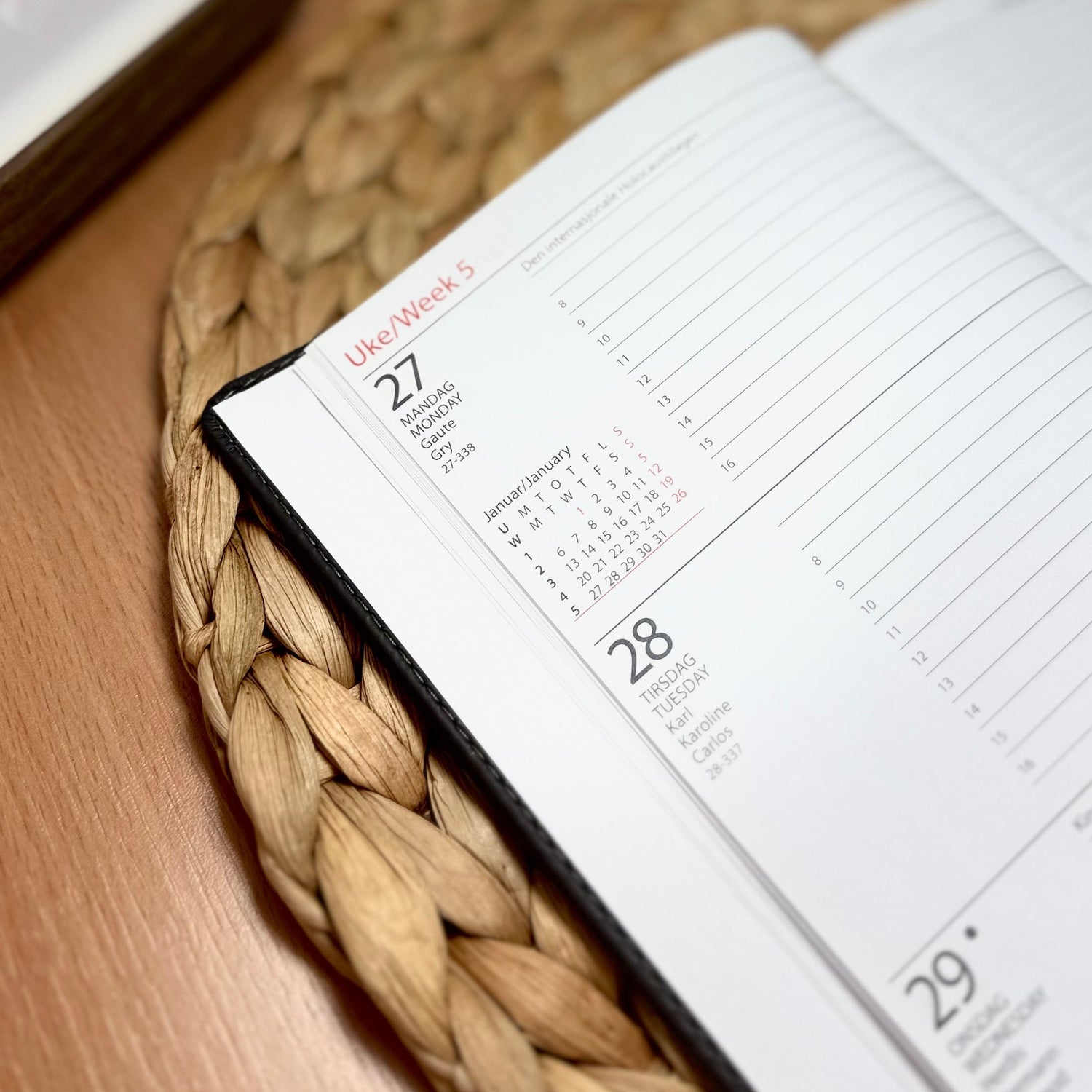 Se produktDatum er en av våre bestselgere og denne utgaven har et innbundet omslag i trendy, imitert skinn Kalenderen inneholder nyttig informasjon, kart og oversikter – en pålitelig planlegger for en hektisk hverdag.