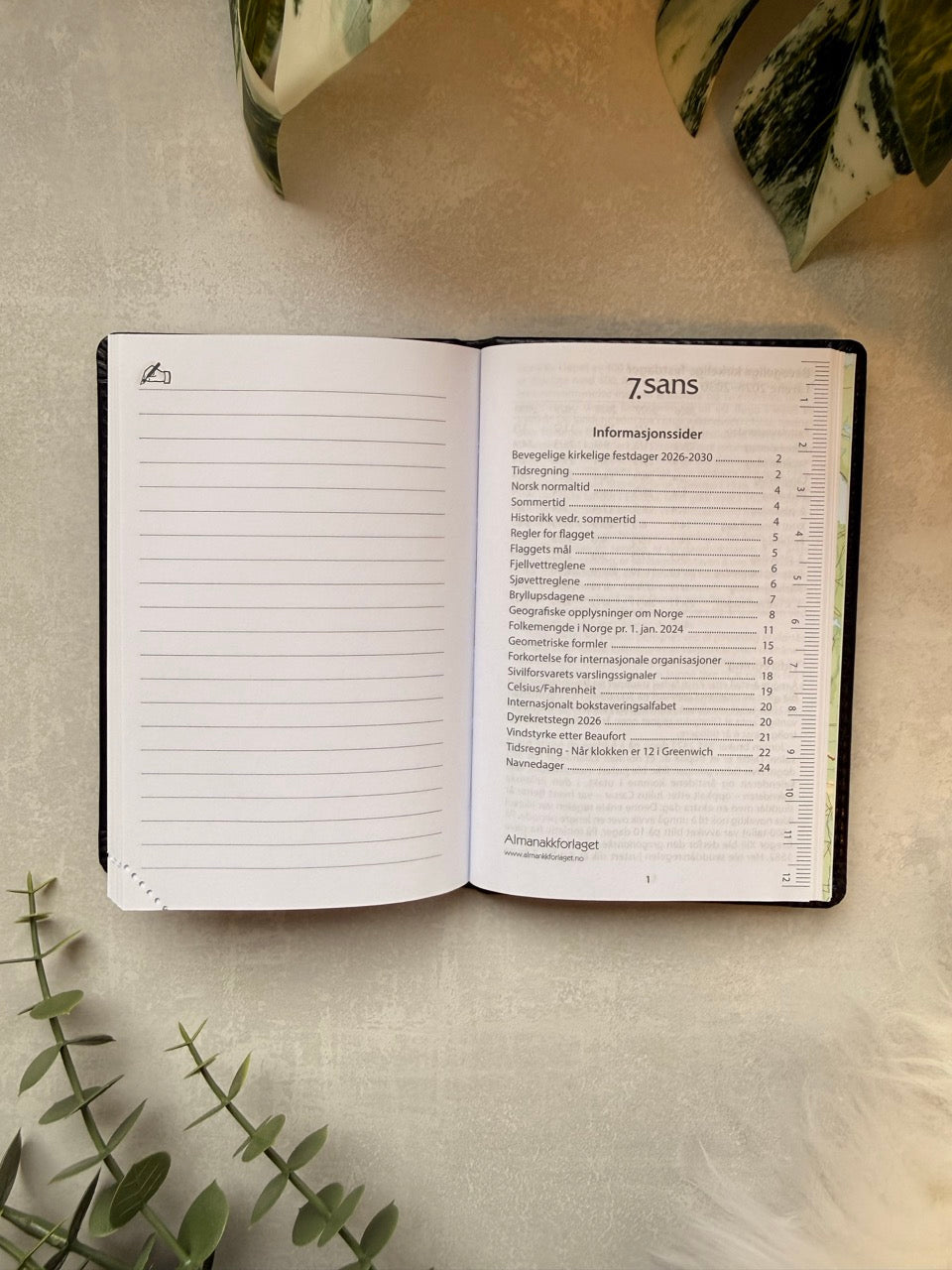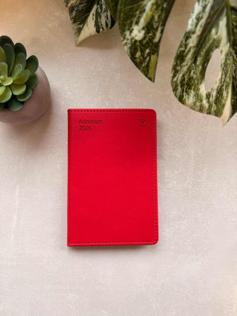 Adnotam er en liten lommekalender som gir god plass til notater og dagens oppgaver i et praktisk og slitesterkt innbundet format. Kalenderen finnes i klassiske farger og materialer, samt årets trend, og inneholder mye nyttig informasjon som kart og oversikter. Perfekt for deg som ønsker en kompakt og innholdsrik planlegger med solid innbinding.