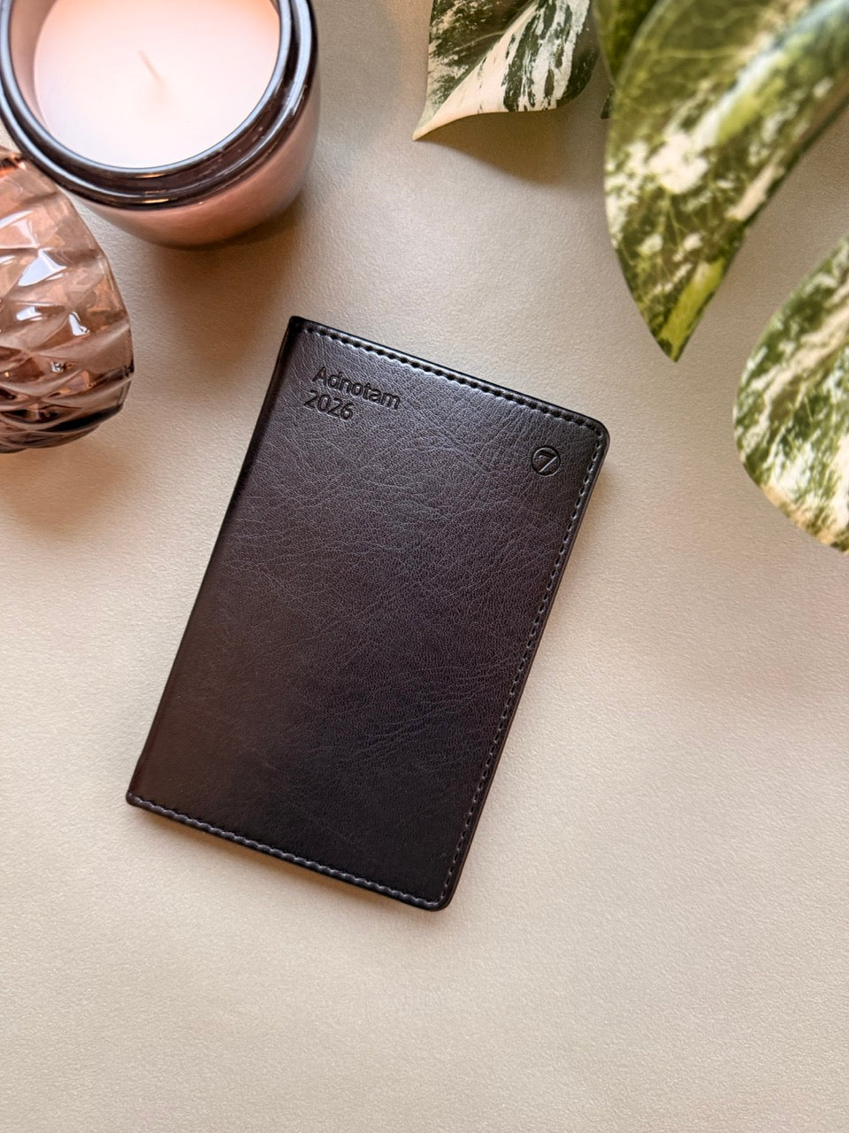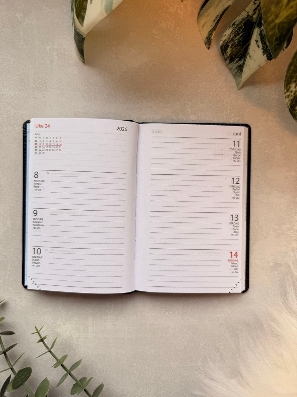 Adnotam er en liten lommekalender som gir god plass til notater og dagens oppgaver i et praktisk og slitesterkt innbundet format. Kalenderen finnes i klassiske farger og materialer, samt årets trend, og inneholder mye nyttig informasjon som kart og oversikter. Perfekt for deg som ønsker en kompakt og innholdsrik planlegger med solid innbinding.