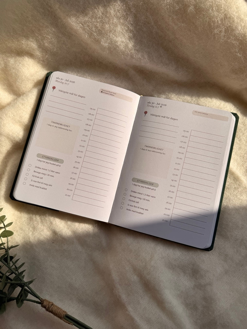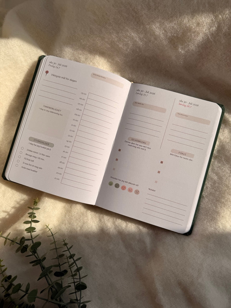 - Én dag per side gir god plass til refleksjon og planlegging