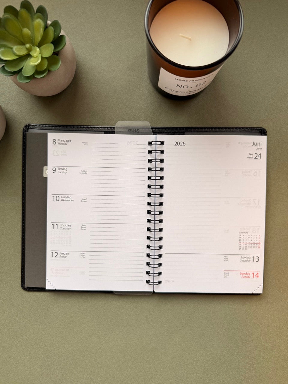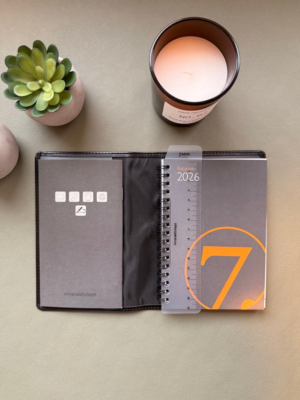 Futurum er en praktisk og romslig lommekalender med én uke på to sider og ekstra notatplass for hver uke. Med bredere format enn Datum og Agenda får du god oversikt over ukens gjøremål. Leveres som spiralisert refill i omslag i imitert skinn. Inneholder også infosider og kart.