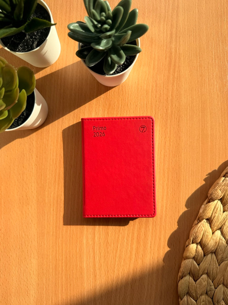 Primo er en av de eldste 7.sans-modellene og selve opprinnelsen til varemerket. I tiår har Primo fulgt utviklingen i samfunnet, samtidig som den har beholdt sitt klassiske uttrykk. Denne versjonen har et slitesterkt kunststoffomslag og inneholder nyttig infomateriale, god notatplass og kart – perfekt for deg som ønsker en liten, men innholdsrik planlegger i hverdagen.