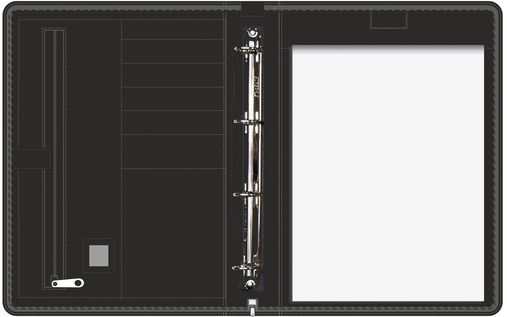 Konferansemappe Mjølner er laget i et godt og slitesterkt imitert skinn omslag. Den har god plass for diverse ark, kort ol i tillegg til blokken som medfølger. Med innebygd ringmekanisme får man også satt inn plastlommer ol.