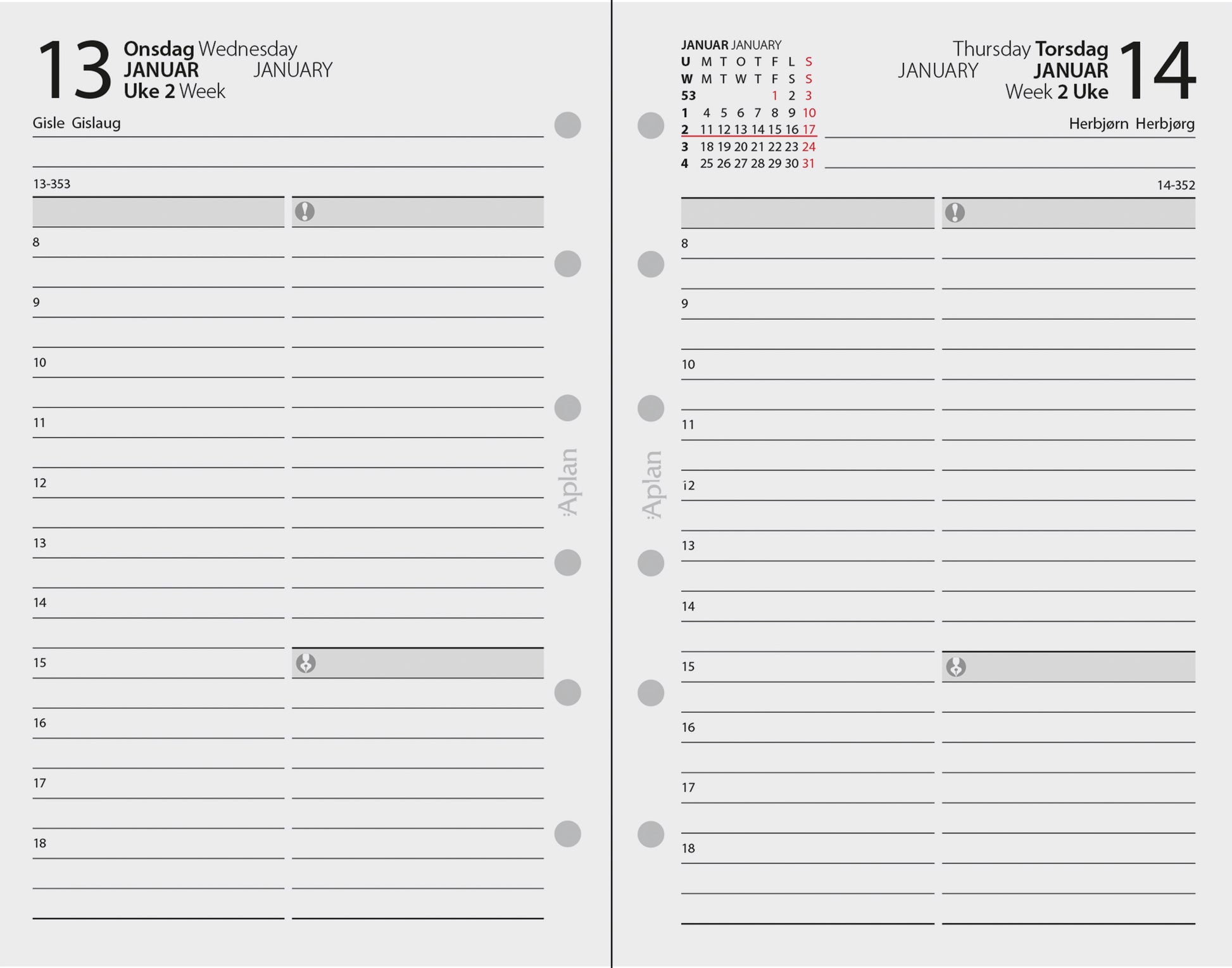 - Daglig planlegging i lommeformat – oversikt over hele dagen, én side av gangen
