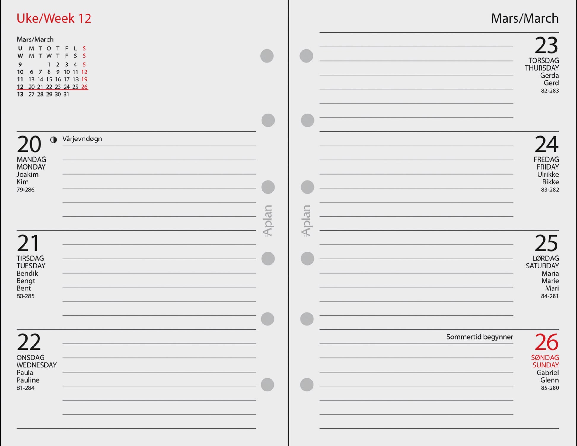 - Ukentlig planlegging i lommeformat – oversikt over hele dagen, én side av gangen