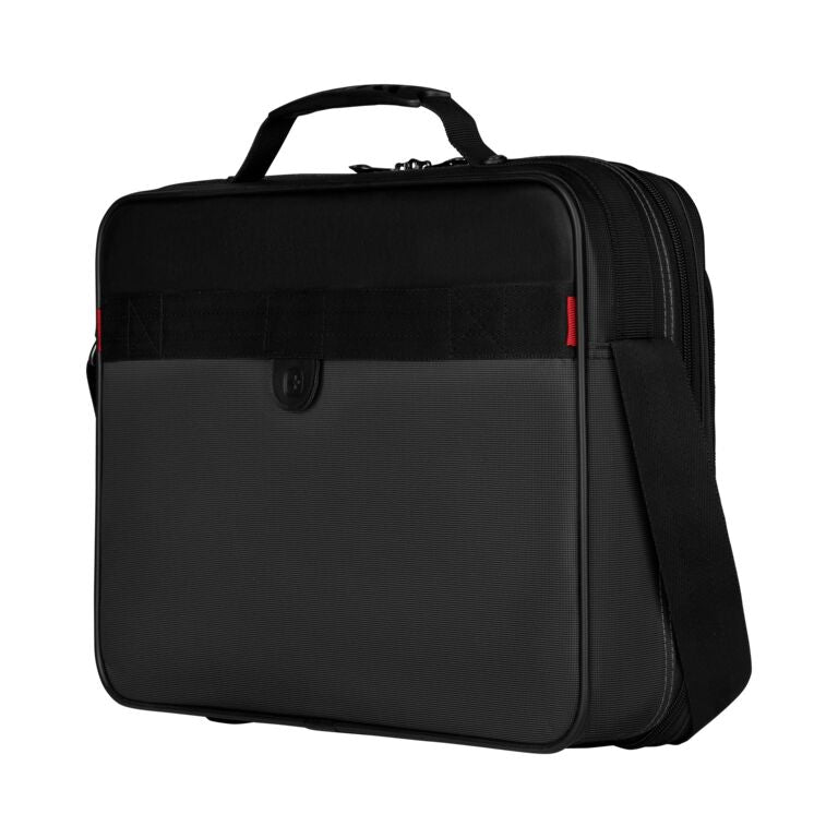 Vesken har et polstret laptoprom med koffertåpning, som beskytter enheten mot støt og skader. En egen polstret lomme for nettbrett og en Essentials Organizer holder alt fra ladere til visittkort i orden.