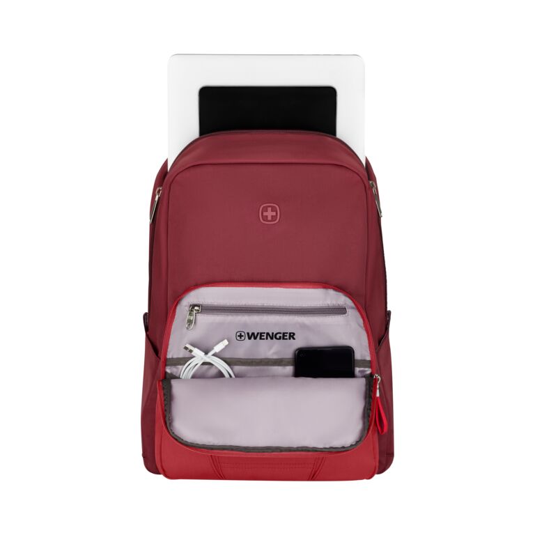 Wenger Motion Backpack, 15.6" Laptopsekk med nettbrettlomme, Digital Red Elegant og funksjonell – Motion Backpack kombinerer stil med smart oppbevaring. Denne allsidige sekken matcher ethvert antrekk og gir deg full bevegelsesfrihet.