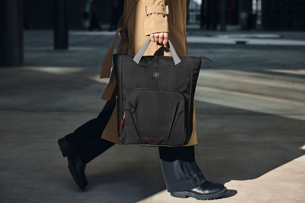 Wenger Motion Vertical Tote, 15.6" Laptop-veske med nettbrettlomme, Chic Black Allsidig og stilsikker – Motion Vertical Tote kan bæres som både veske og ryggsekk. Den tilpasser seg hverdagen din og gir fleksibilitet uansett anledning.