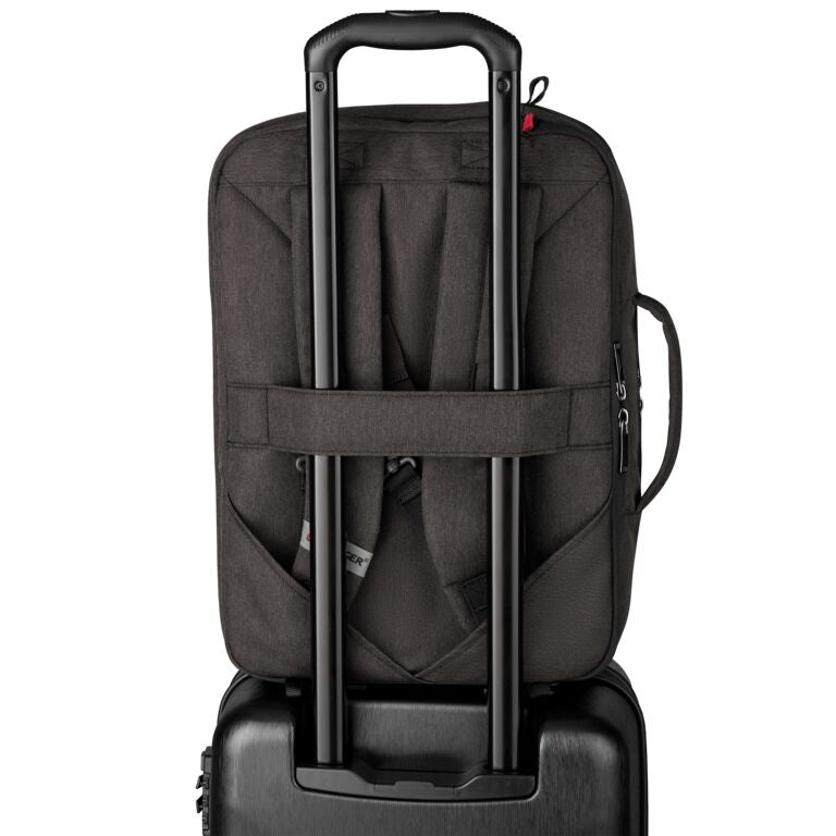 Denne elegante og praktiske vesken kombinerer smart oppbevaring med allsidig bærekomfort. Den har et polstret laptoprom og et eget QuickAccess-rom som passer perfekt til et nettbrett eller reisekort. Innvendig finner du en SmartOrg-organizer som holder styr på lader, kabler og småting. Bæreløsningene er fleksible: bruk den som skulderveske, ryggsekk, eller fest den enkelt til en trillekoffert via Pass-Thru-stroppen.